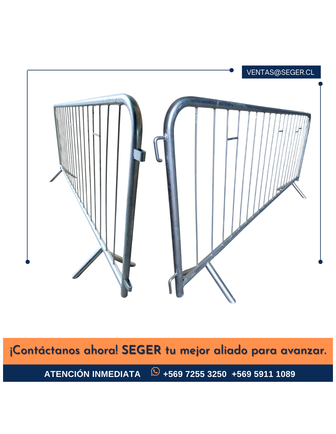 VALLA PEATONAL SEGER 1.10 X 2.0MT TUBO PINTURA AL HORNO