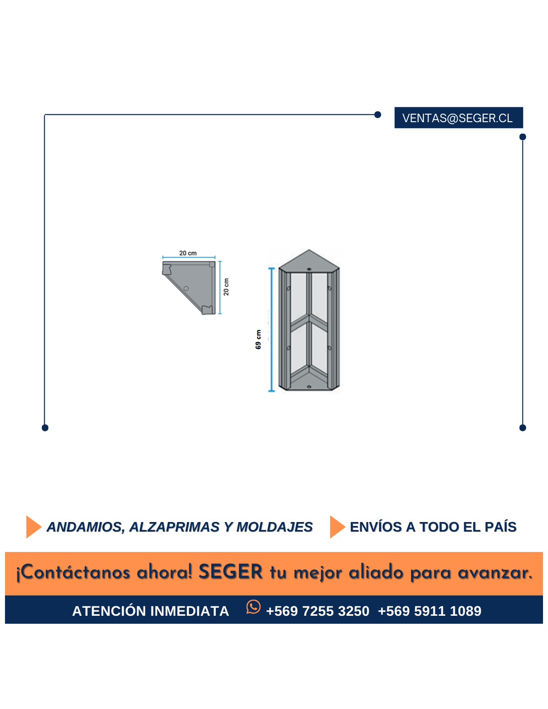 Tienda ESQUINERO INTERIOR 200 x 200 x 2520 PARA MOLDAJE Elemento que se utiliza para perfilar las esquinas en: Muros, Piscinas, Columnas, etc. Fabricados con Bastidor Metálica de 60 x 40 en 3mm de espesor. Acabado en Placa Metálica de 3 mm de espesor. Ver más